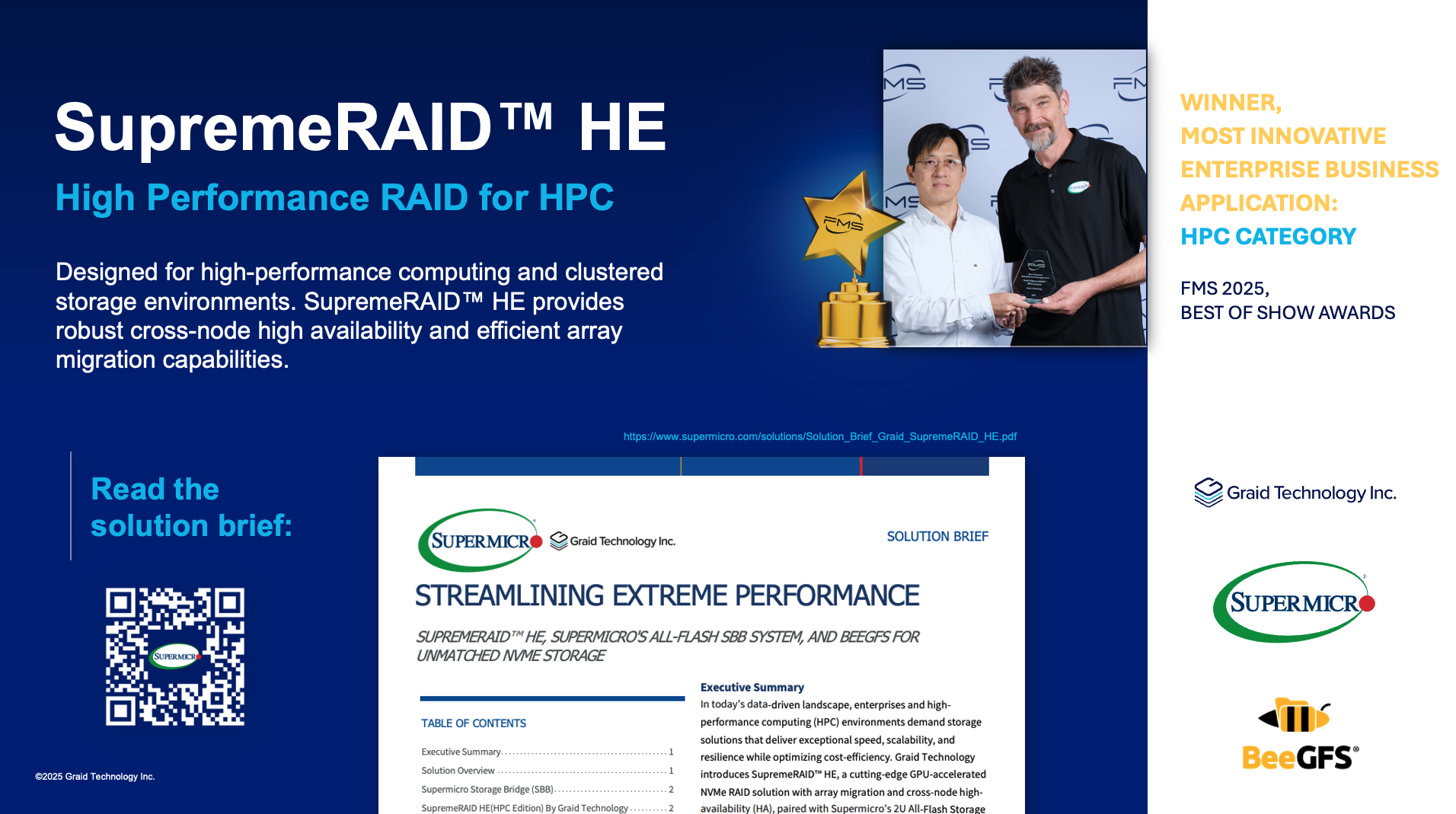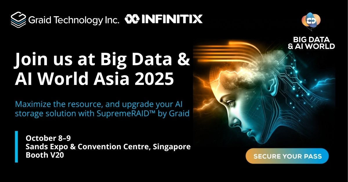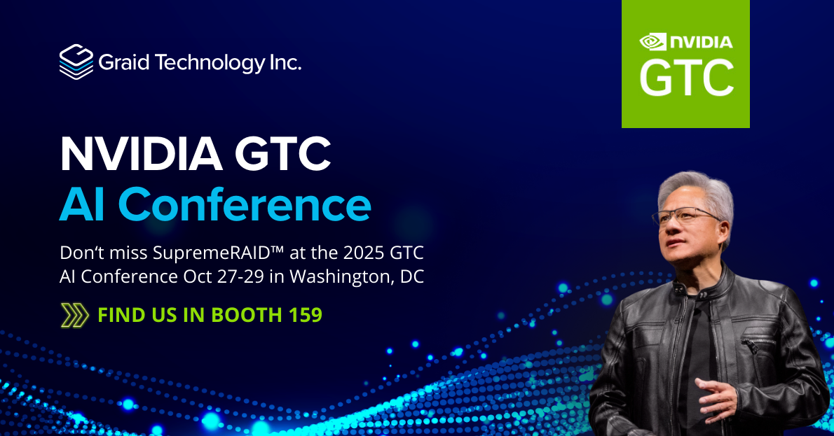 At Graid Technology, we're innovating to deliver uncompromising data resilience and performance for the AI era. SupremeRAID™—the industry’s leading GPU-based NVMe RAID—eliminates CPU bottlenecks to maximize NVMe performance for AI, HPC, and enterprise workloads.