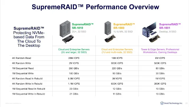 We all know that SR-1000 and SR-1010 are dedicated respectively for cloud and enterprise servers supporting 1U and 2U servers with 32 SSDs each. As said, Graid introduced the SR-1001 for tower, edge servers and workstations for 1U and 8 SSDs max.