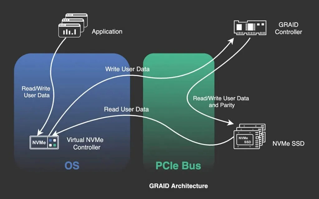 Graid works by installing a virtual NVMe controller onto the operating system, and integrating a PCIe device into the system equipped with a high-performance AI processor to handle all RAID operations of the virtual NVMe controller.