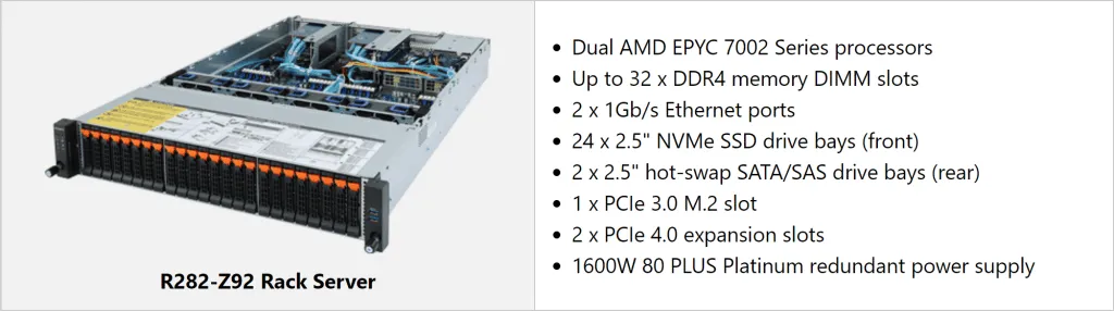GIGABYTE’s R282-Z92 is an ideal high-density computing server, with a design optimized for storage and a two-fold increase in I/O performance, that can meet the increasingly demanding workload requirements of software-defined and virtualized infrastructure, Big Data analytics or all-flash high-performance storage services.