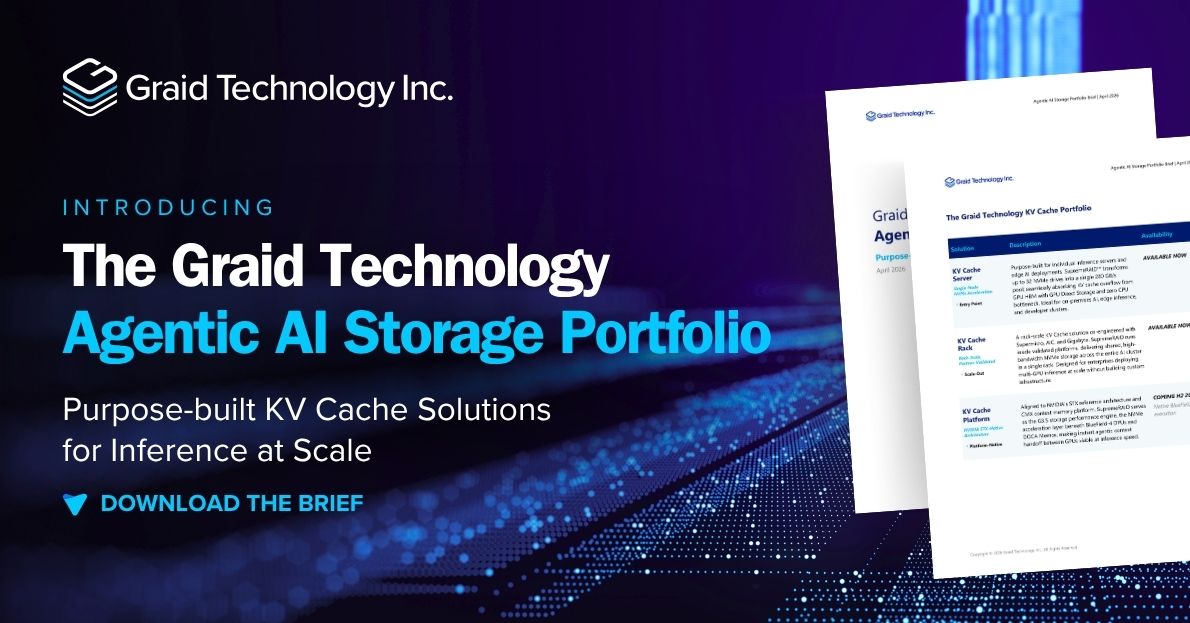 Download the Graid Technology Agentic AI Storage Portfolio Brief for the complete technical narrative, deployment architecture, NVIDIA STX compatibility FAQ, and roadmap details.