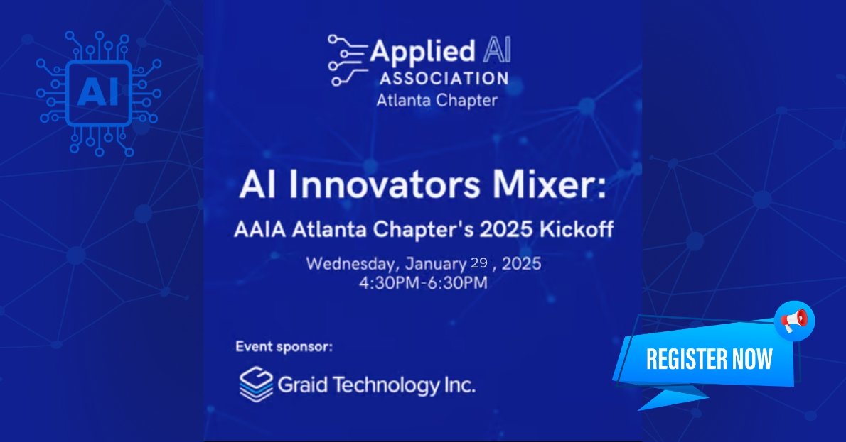 Proudly Sponsored by Graid Technology || Wednesday, Jan 29, 4:30 PM – 6:30 PM EST in Sandy Springs, GA. Register now! Register Now The Applied AI Association (AAIA) Atlanta Chapter...