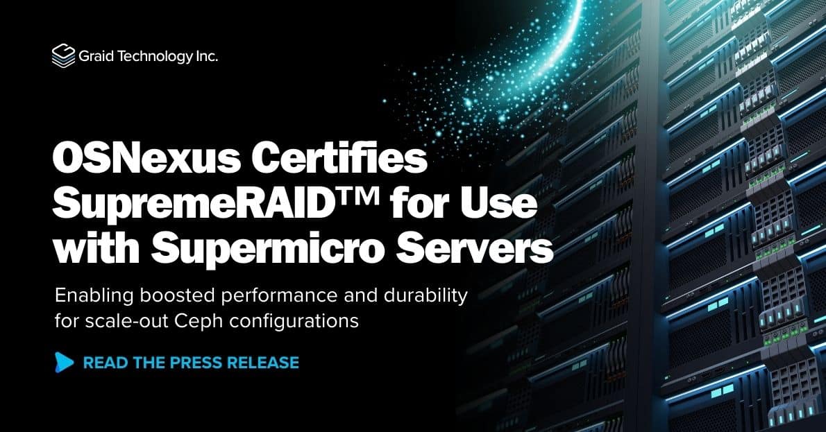 OSNexus QuantaStor is now certified for use with SupremeRAID™ by Graid Technology, enabling boosted performance and durability for scale-out Ceph configurations. The testing was completed using Supermicro servers. BELLEVUE, Wash., July...